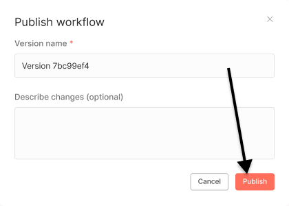 Name your workflow verison and optionally describe your changes. Click Publish.