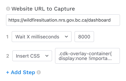 PagePixels is a screenshot automation tool that you can use to take automated scheduled screenshots of web pages, including screenshots of the BC Wildfire Service dashboard.