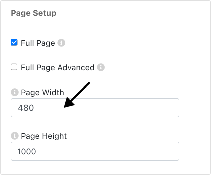 Update the Page Width field from 1920 (default) to: 480