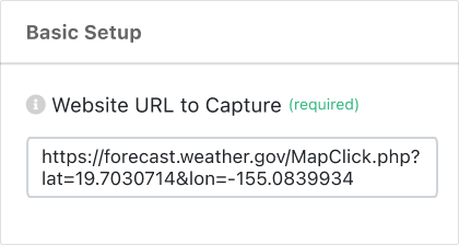 PagePixels is a screenshot automation tool that you can use to take scheduled screenshots of web pages, including the latest National Weather Service weather forecast information.