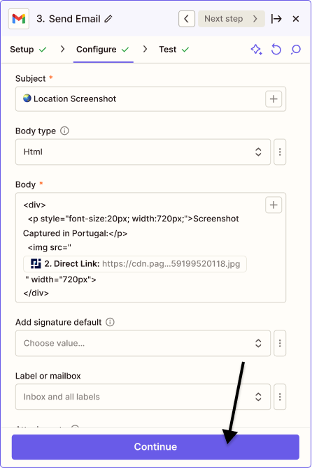 As an example, this tutorial demonstrates how to create a Zapier screenshot automation that takes a daily Real Locations screenshot and sends the screenshot image in a Gmail email message.